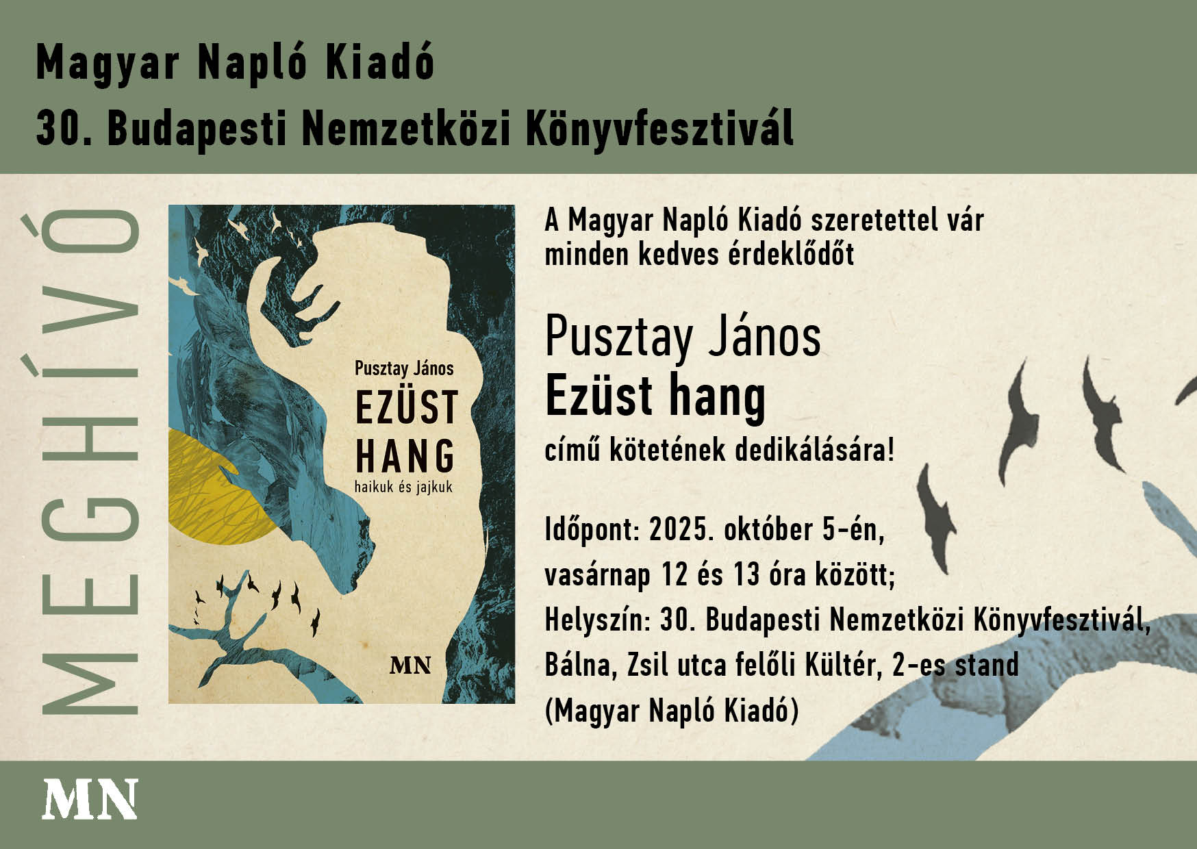 A Magyar Napló Kiadó szeretettel vár minden kedves érdeklődőt Pusztay János Ezüst hang című kötetének dedikálására!