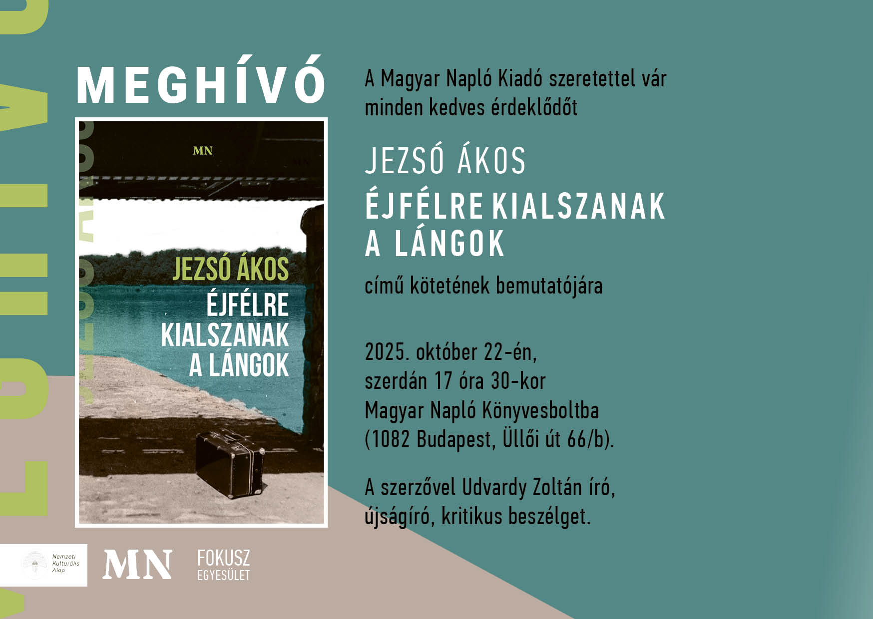 Megosztás Facebook Twitter Linkedin URL másolása Könyvbemutató - Jezsó Ákos: Éjfélre kialszanak a lángok Dátum 2025. október 22., 17:30 – 18:30 Helyszín Magyar Napló Könyvesbolt (1082 Budapest, Üllői út 66/b.) További események Könyvbemutató: Jobbágy Domokos: Az ő foglyuk voltam Könyvbemutató - Nyilasy Balázs: Elvek és szavak próbája Könyvbemutató - Rónai Balázs Zoltán: Egy középkori polgár Teljes lista
